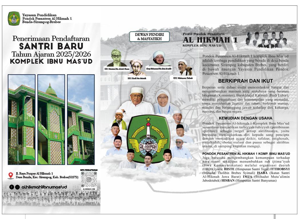 Informasi biaya pendaftaran santri baru pondok pesantren AL HIKMAH 1 Komplek Ibnu Mas'ud Putra dan Putri Tahun Ajaran 2025/2026 Contact Person :0878-0258-4673(Kantor Pondok Putri)0813-2839-6072(Ketua Pondok)0889-8321-8834(Wakil Ketua)